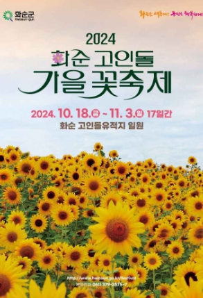 2024 전남 축제 일정 10월 총정리 첫 번째 행사는 화순 고인돌 가을꽃 축제입니다. 매년 10월 가을꽃의 개화시기에 맞춰 유네스코 세계문화유산에 등재된 고인돌 유적지에서 개최되는 축제입니다. 역사적 의미가 깊은 고인돌 유적지에서 코스모스, 국화, 해바라기 등 가을꽃의 청취를 느낄 수 있는 힐링 축제입니다. 2024 화순 고인돌 가을꽃 축제는 '10월, 낭만 화순'을 주제로 10월 18일부터 11월 3일까지 17일간 개최됩니다. 풍성한 해바라기밭에서 즐기는 화순미림(美林) 야외카페, 가을 날씨 속에서 책과 함께할 수 있는 고인돌 책방 등 쉼과 여유를 느낄 수 있는 프로그램, 공연, 체험, 전시행사가 펼쳐집니다. 올해는 다회용기 사용을 통한 친환경 축제, 가을꽃 축제에서만 만날 수 있는 각종 디저트 판매 등 새로운 모습으로 관광객을 맞이할 계획입니다.