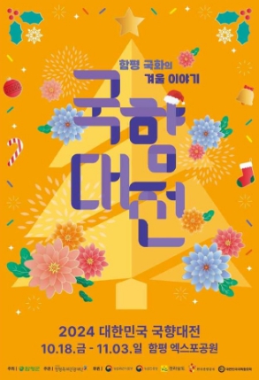 2024 전남 축제 일정 10월 총정리 여섯 번째 행사는 대한민국 국향대전입니다. 가을과 겨울 정취를 만끽할 수 있는 경관연출과 대형트리, 종소리 게이트, 마법의 성 및 9층탑 등 대형 국화 기획 작품과 매년 다양한 국화분재 작품이 전시되어 환상적인 분위기를 연출합니다. 행사장에는 친환경 농산물이 전시 판매되고 있으며, 어린이들이 좋아하는 캐릭터 국화작품 전시, 동물숲 포토존, 전통민속놀이 체험, 축제 분위기에 어울리는 문화예술공연 등 다양한 체험과 즐길거리가 준비되어 있습니다.