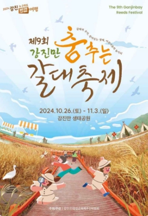 2024 전남 축제 일정 10월 총정리 여덟 번째 행사는 강진만 춤추는 갈대축제입니다. 강진만생태공원은 탐진강과 강진만이 만나는 둑이 없는 하구로 다양한 생태자원이 풍부하게 서식하고 있으며 1,131종 생태다양성의 보고로 매년 2,500여 마리의 큰고니가 방문하는 집단 서식지입니다.
