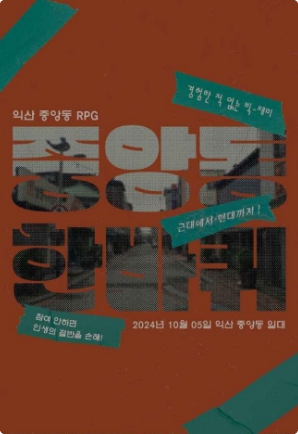 2024 전북 축제 일정 일정표 10월 총정리 다섯 번째 행사는 중앙동 한 바퀴입니다. 중앙동 한 바퀴는 참가자가 익산 중앙동 일대를 누비며 중앙동 일대가 커다란 놀이 공간으로 인식될 수 있도록 오프라인으로 진행되는 RPG 프로그램입니다. 지역 상권과 협력하여 다양한 미션을 수행하는 방식으로, 참가자들은 현실 세계에서 게임 속 캐릭터처럼 활동하게 됩니다. QR 코드 활용해 실시간으로 미션을 해결하며 중앙동 곳곳을 탐험하고, 지역 상인들과 상호작용하면서 새로운 경험을 할 수 있습니다. 이 프로그램은 익산시의 여러 장소와 전통시장을 탐험하며 지역 문화를 체험하는 기회를 제공합니다. 또한, 참가자들은 계절별 축제와 연계된 특별한 이벤트를 경험하며, 익산의 역사와 전통을 생동감 있게 느낄 수 있습니다.